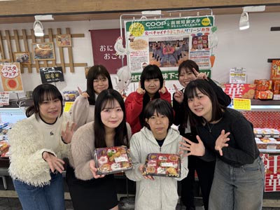 本学食物栄養学科の学生は、地元の企業と協働した研究活動として、株式会社コープフーズ様とのコラボレーション企画でお弁当を考案しています。毎年、お弁当のテーマや使用可能な食材を考えて試作を重ね、打ち合わせを実施し、販売に至ります。そして2月に、今年度で10回目となるコラボ弁当がコープさっぽろ様から販売されました。
